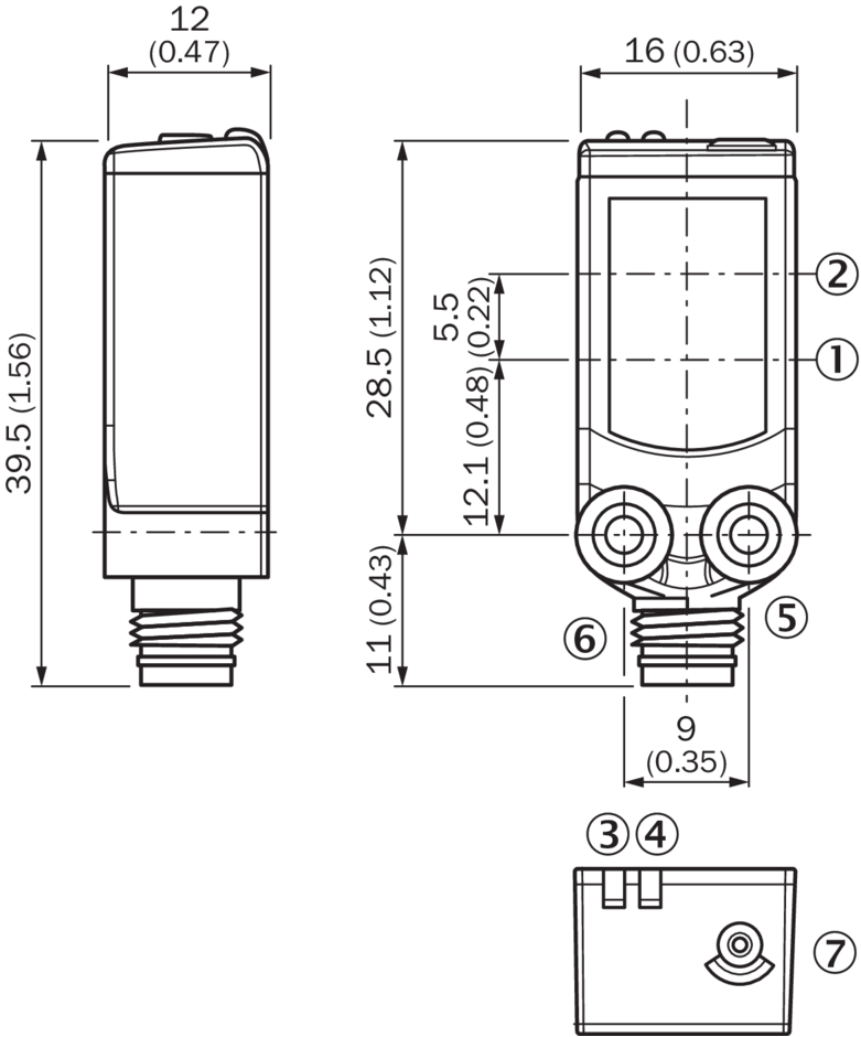 ④ LED indicator green: Supply voltage active