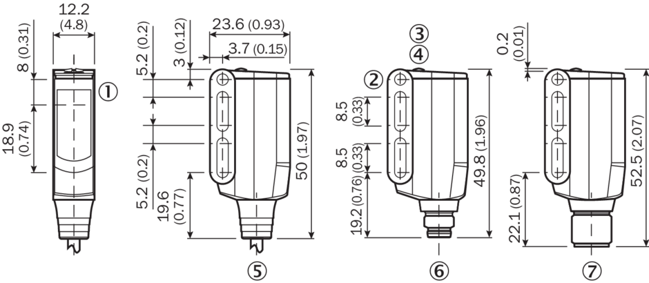 ⑦ male connector M12, 4-pin