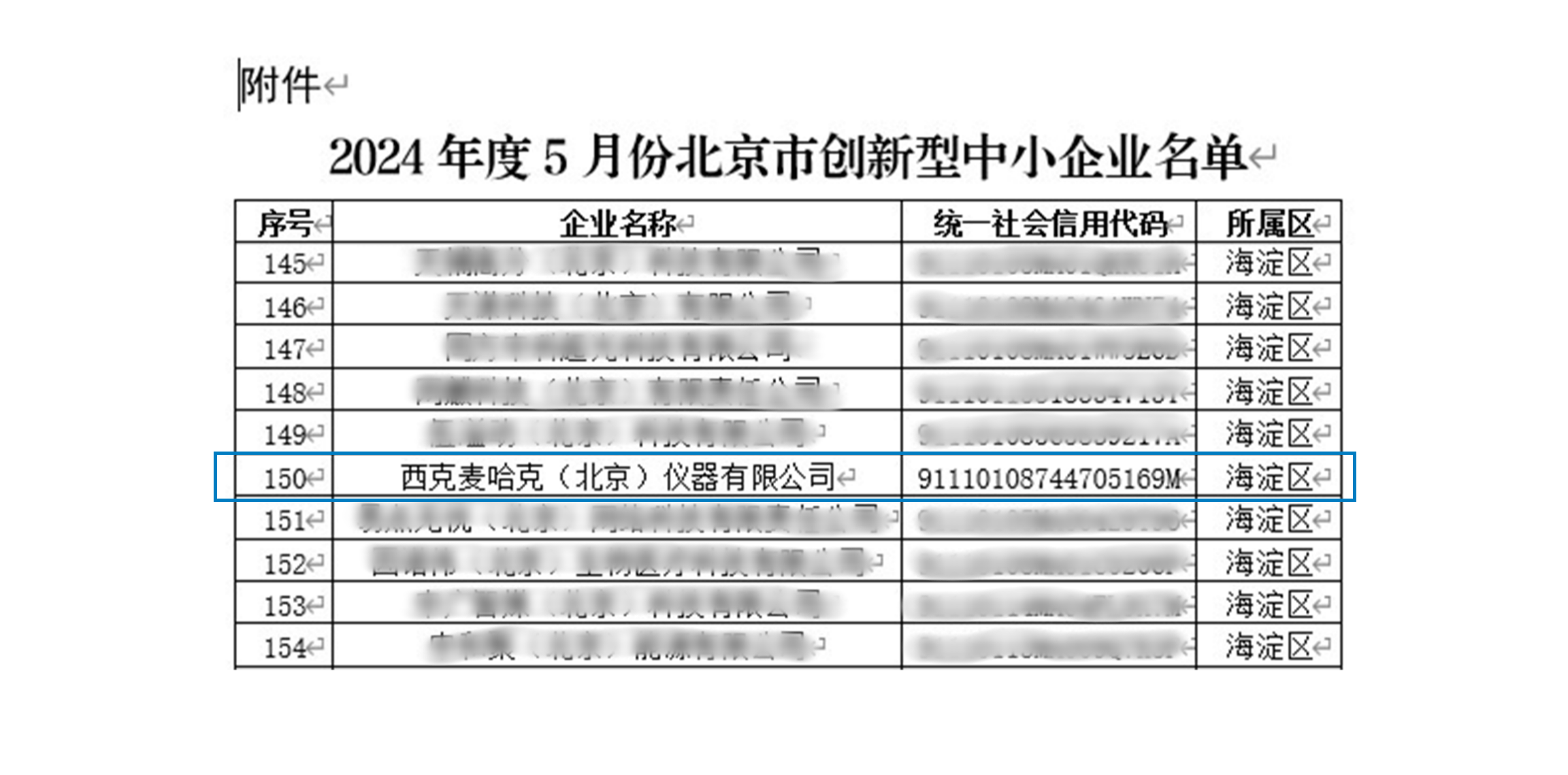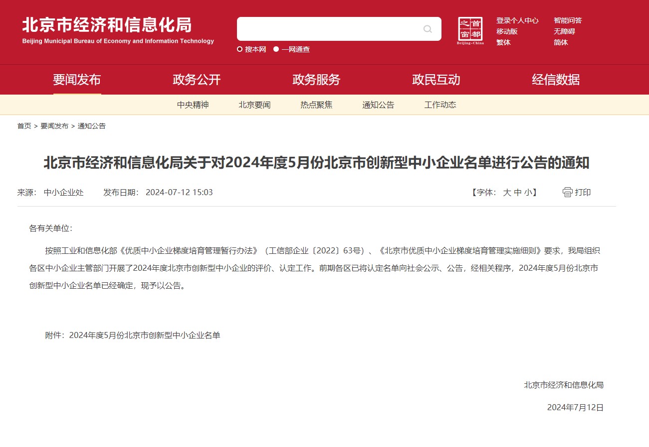 近日,北京市经济和信息化局发布2024年度5月份最新一批北京市创新型中小企业名单,西克麦哈克(北京)仪器有限公司入榜获评“北京市创新型中小企业”。