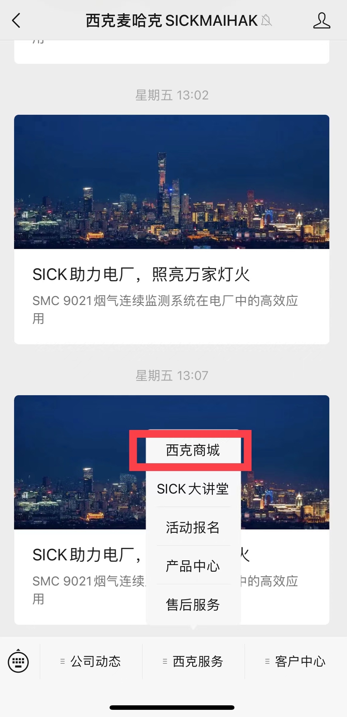 关注西克麦哈克公众号,注册会员,进入西克商城