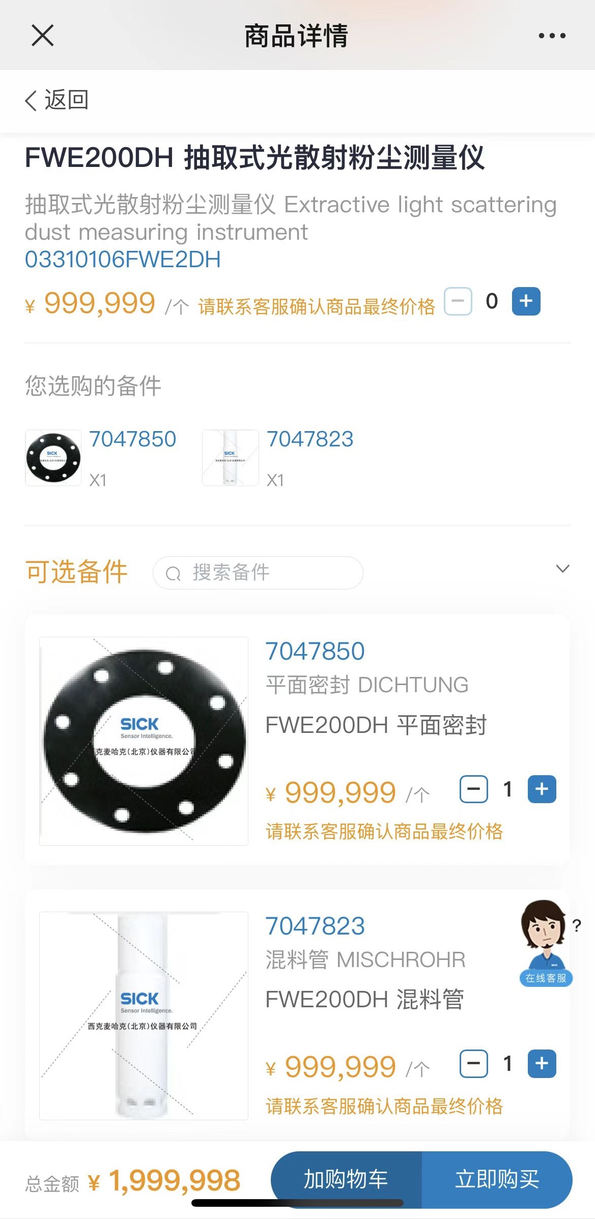 目前,西克商城将专注于备品备件的销售,随着商城使用经验的积累,我们也将继续扩大商城的产品覆盖,并进一步提升用户的体验,如果您有任何建议请随时与我们联系。