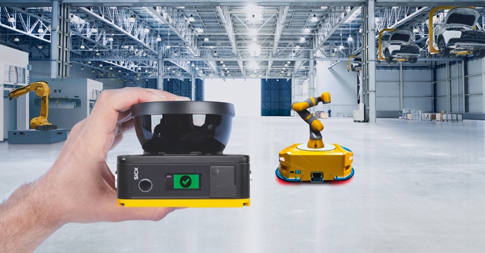 Automatiske guidede køretøjer, mobile platforme såvel som autonome carts og cobots har én ting til fælles: De bliver stadig mindre. De er dog fortsat underlagt strenge krav til deres sikre drift. Men hvor placerer du sikkerhedssensorerne, når installationspladsen bliver stadig mindre? Løsningen på pladsproblemer kaldes nanoScan3. Takket være dens lille størrelse passer den nye sikkerhedsscanner fra SICK ind i de mindste installationsrum, mens den yder maksimalt med hensyn til sikkerhedsfunktioner og måledata til præcis lokalisering og support for navigation.