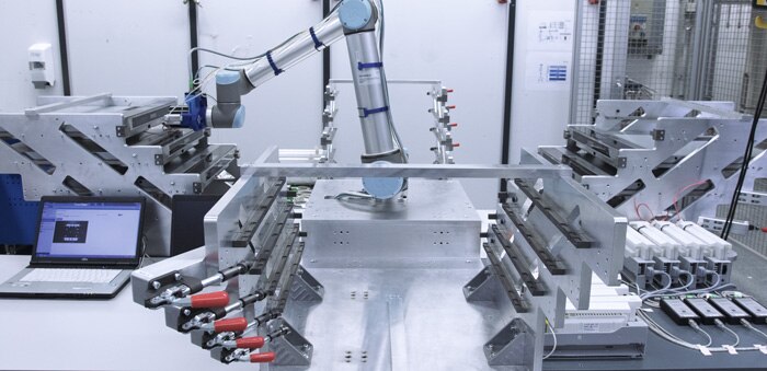 Når nye paneler eller varianter skal afprøves, lægges de som regel først enkeltvis ind i en teståbning og forbindes så med en laptop. På robottens betjeningspanel vælger operatøren derefter en panelvariant og foretager de tilsvarende indstillinger. Så ved robotten, hvor den pågældende panelvariants enkelte taster befinder sig. Når testen er startet, fører robotten kameraet frem til den første referenceposition, hvor det optager et billede, registrerer det detekterede tegns positionsdata og transmitterer dem videre til robotstyringen. Derefter retter den robotarmen aktivt ind efter referencebilledet, så den befinder sig midt over referencebilledet. Med testfingeren på armen afprøver robotten nu hver eneste taste. Det aktuelle kamerabillede vises på laptoppens skærm, idet et grønt symbol angiver, at referencemærket er genkendt korrekt. Når alle taster på et panel er afprøvet, bevæger robotten kameraet hen til det næste panel, og processen starter forfra med søgning og analyse af referencemærket.