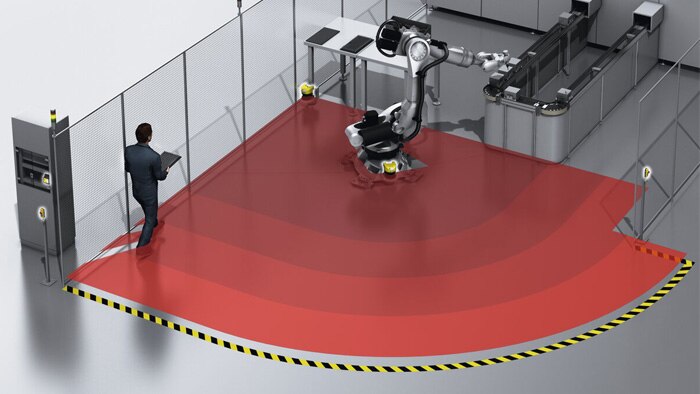 • Robotin liike lakkaa ennen kuin käyttäjä tulee yhteiseen työtilaan