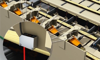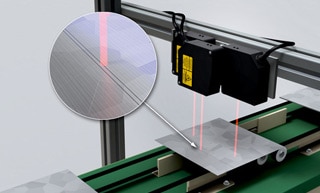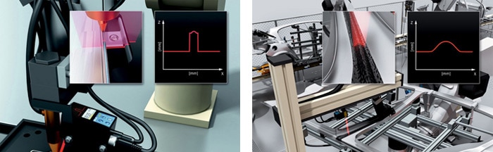 Le même principe de fonctionnement s’applique également aux capteurs qui n’utilisent pas un spot lumineux, mais une ligne laser, combinée à un récepteur matriciel CMOS. Dans ce cas, un profil peut être détecté et évalué directement, sans avoir à déplacer l’objet.