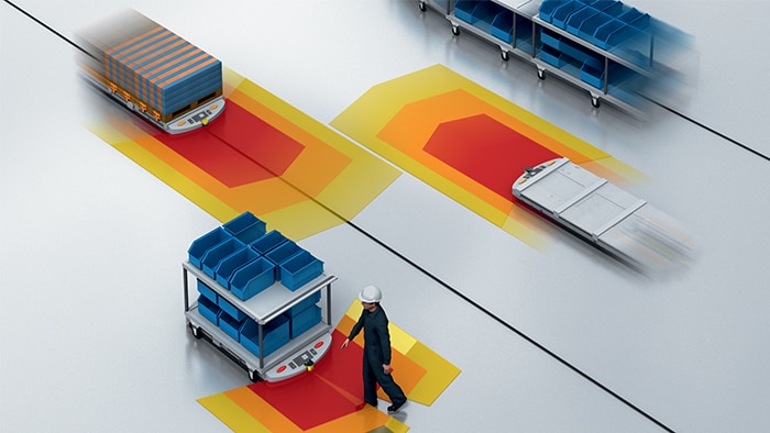 Les solutions et produits de SICK dédiés aux AGV comprennent des capteurs et des systèmes optiques qui aident les entreprises à rendre les opérations de manutention plus efficaces et plus sûres grâce à l'automatisation robotique.