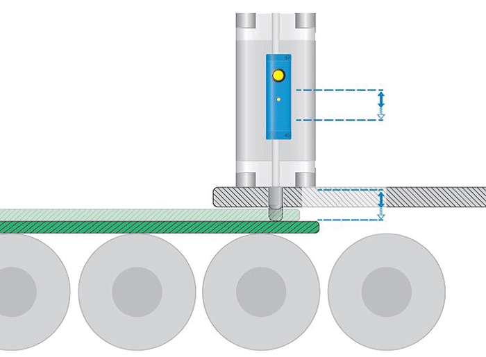 Automation task using pneumatic cylinders equipped with magnetic position sensors (MPS) are gaining popularity in electronics industries, especially the manufacturing sector. Unlike cylinders using standard magnetic sensor that detects only ON-OFF status position, the magnetic position sensor (MPS) can measure linear position of the piston in cylinders. As manufacturing processes get more demanding, ON-OFF status is no longer adequate. The system needs continuous feedback of pneumatic piston position for this sophisticated tasks realisation. Some of such are like sonotrode control in ultrasonic welding machines, requires pneumatic system with MPS to operate effectively.