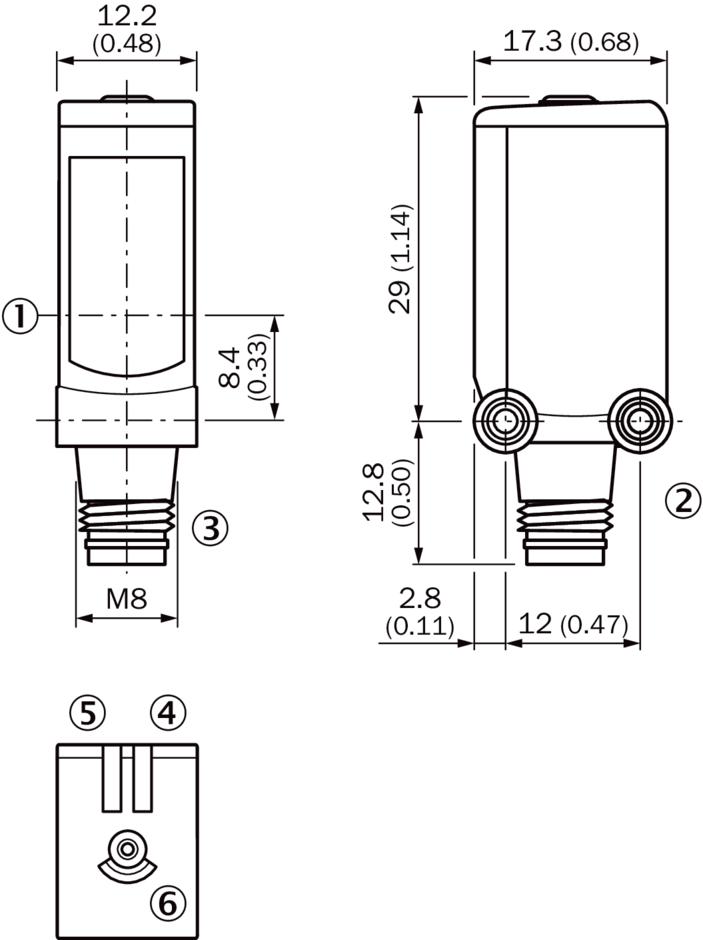 ⑤ LED indicator yellow: Status of received light beam